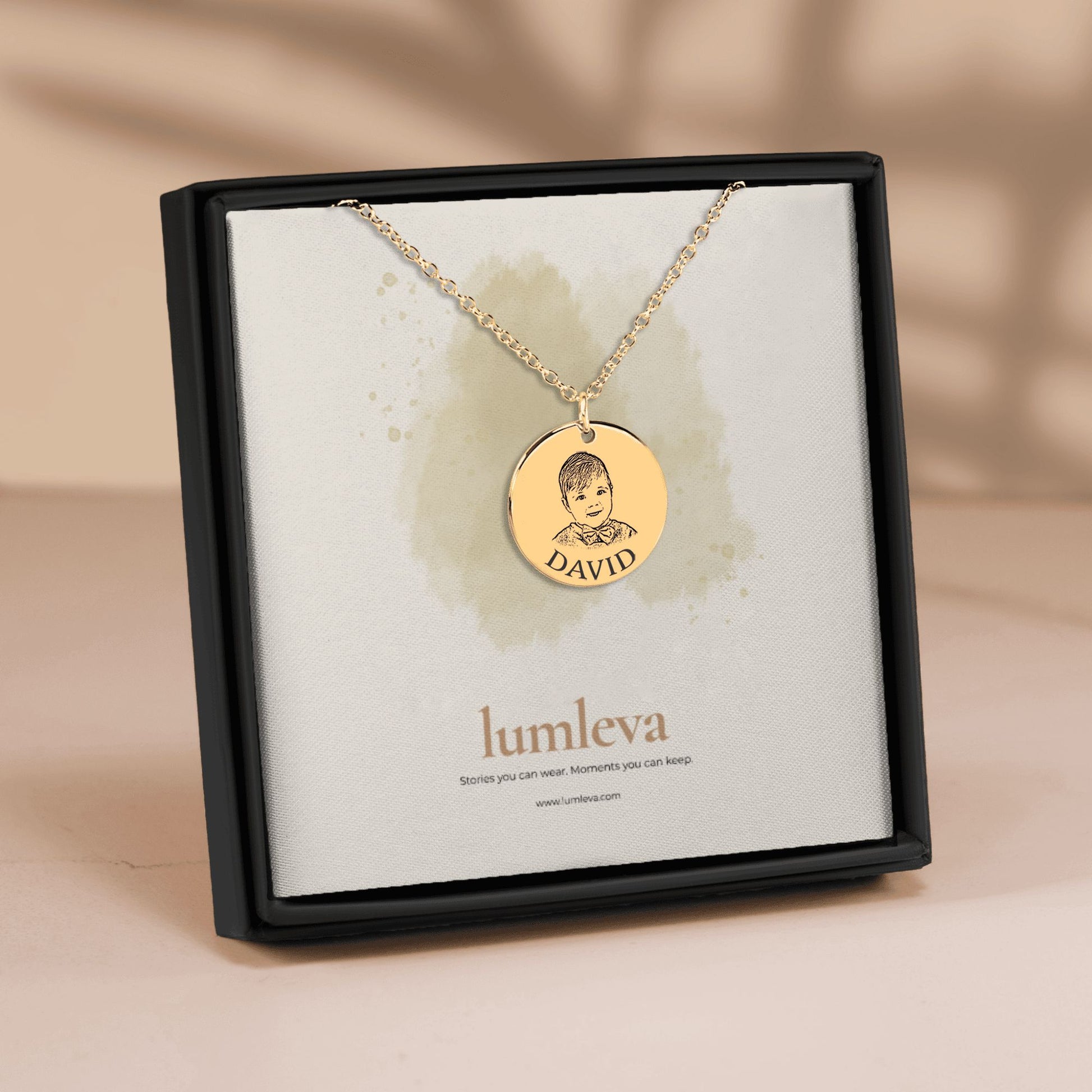 Personalize your necklace with a photo of your baby or loved one, and our designers will turn it into a delicate engraved portrait — a timeless keepsake you’ll treasure forever.